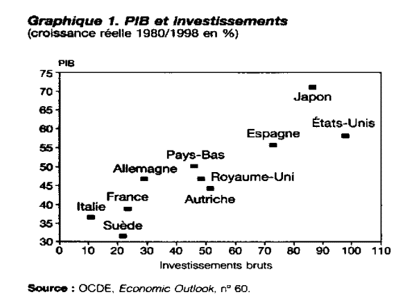 Sur la période 1980-1998, on observe une relation étroite entre les taux de croissance réels du PIB et des investissements (voir graphique). Chaque investissement contribue donc à la modernisation du stock de capital et de la structure économique.